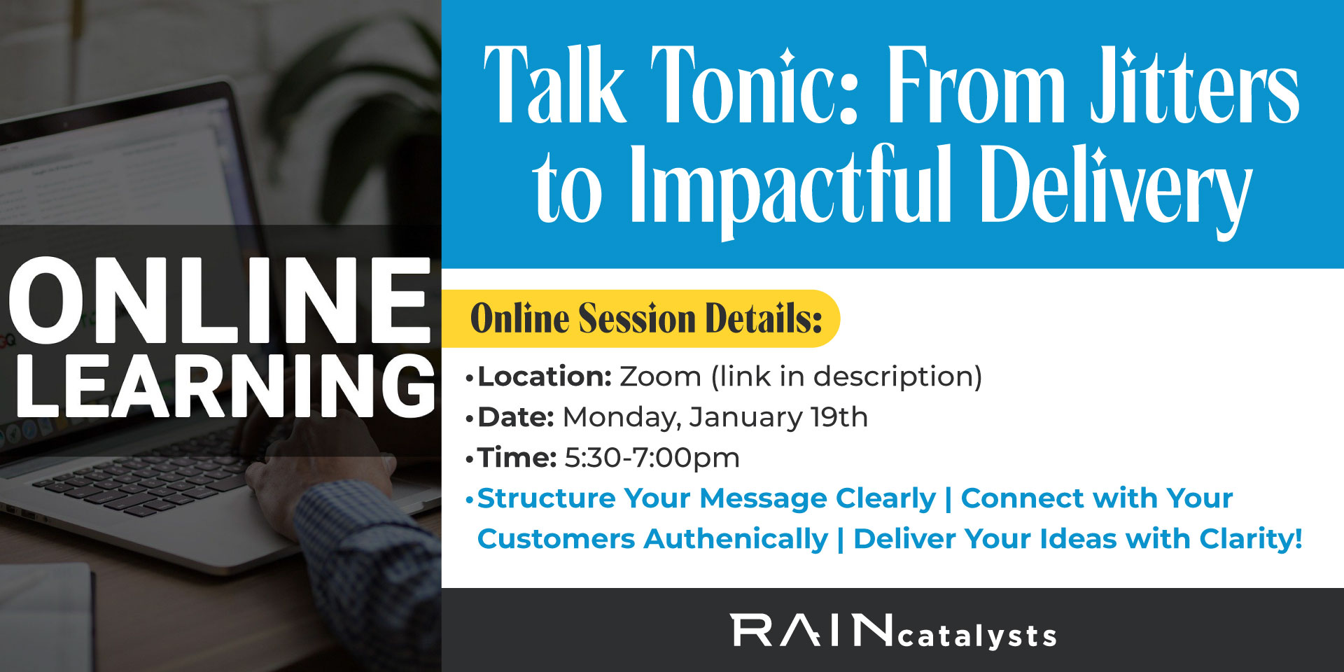 Tired of feeling that knot of anxiety when you need to speak up or present? Join us for The Talk Tonic: From Jitters to Impactful Delivery. This strategic framework is designed to help you transform your relationship with high-impact communication. We’ll move beyond generic advice to focus on real-world techniques like Cognitive Reframing and structured Pre-Talk Rituals that help you proactively manage nervousness. Learn how to structure your message clearly, connect with customers and clients authentically, and deliver your ideas with the clarity and confidence necessary to elevate your service or retail business.